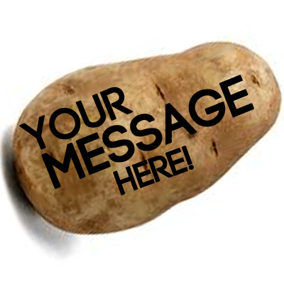 Send a personalized potato with your custom message to friends, family, strangers, celebrities, or even as a prank. Go anonymous for ultimate mystery, or go big with a crazy bulk order of 1,000 potatoes to show someone you really care-or really don't.